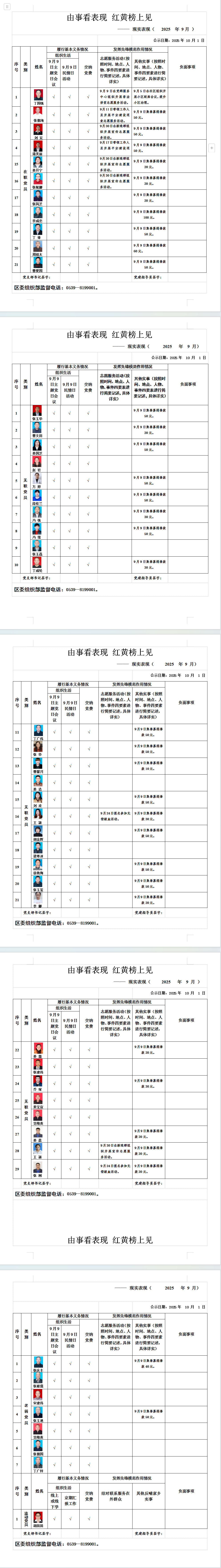 由事看表现 红黄榜上见(十月份) [2025-11-01]