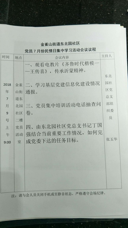 东北园社区8月份党员集中学习活动会议议程表 [2018-08-08]