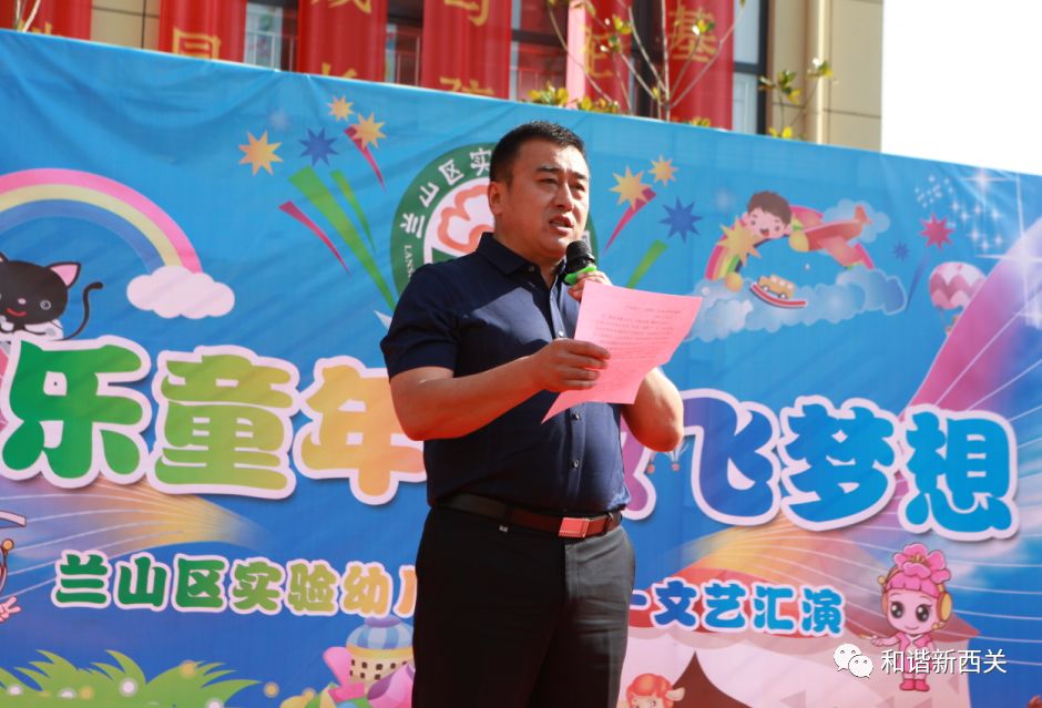 兰山区实验(西关)幼儿园一直得到西关社区的大力支持,今天,西关社区党委、山东华丰集团董事长郁新闻带领班子成员来到活动现场并发表讲话,对孩子们寄予了殷切希望,并祝福所有的孩子们“六一”快乐。