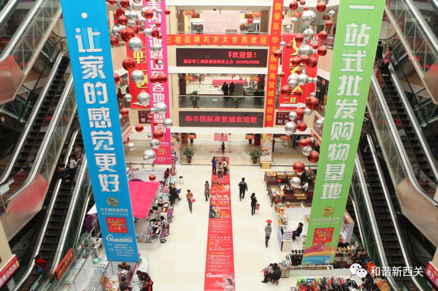 西郊大棚底作为临沂商城的发源地,成就了一颗颗闪耀的商城之星,2010年,经过了华丰集团的提升改造,华丰国际商贸城发展成为集批发、零售、餐饮、娱乐为一体的一站式综合性旅游购物中心,改变了人们对昔日老西郊的印象,也让人们看到了老市场焕发出了新升机,变了新模样。