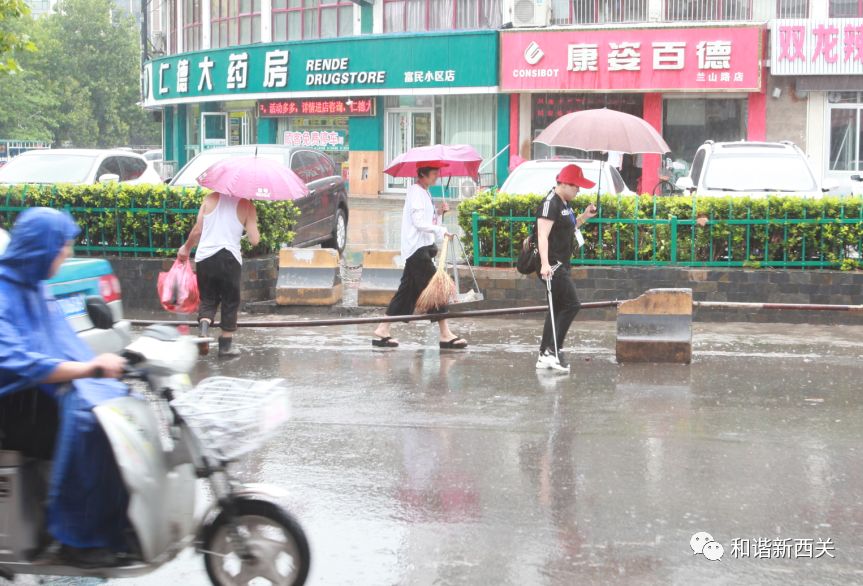 7月9日上午,大雨一个劲地下着,在兰山路、东岳庙街主干道两侧,50多名志愿者们身披雨衣,打着雨伞,清理积水和垃圾,这一幕,被到西关农贸市场参加全区现场会的与会人员看到后,都一致为志愿者们点赞:“西关志愿者,好样的”!
