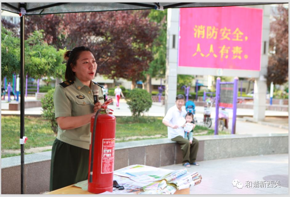 在新设立的西关社区安全生产宣传站前,来自兰山消防大队的两位教员,就家庭防火知识、电动车充电、手持干粉灭火器的使用与保养等,向现场的居民进行认真的讲解,并热心回答居民提出的有关问题。