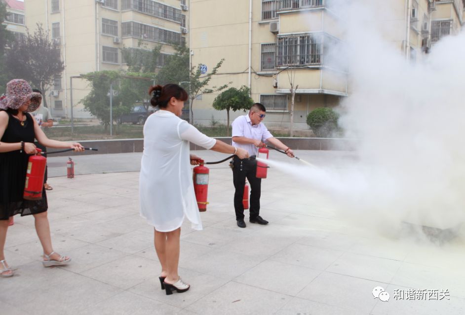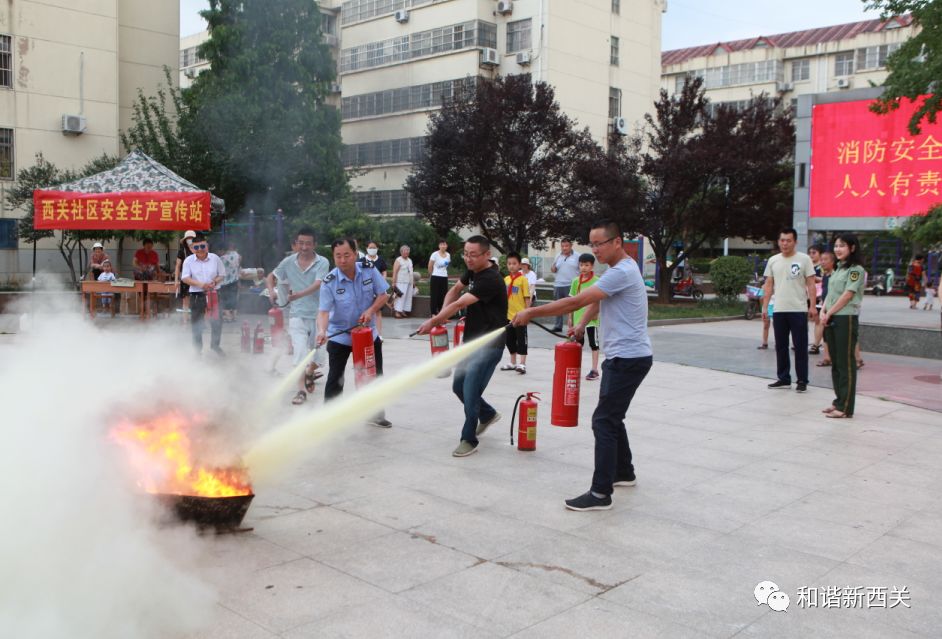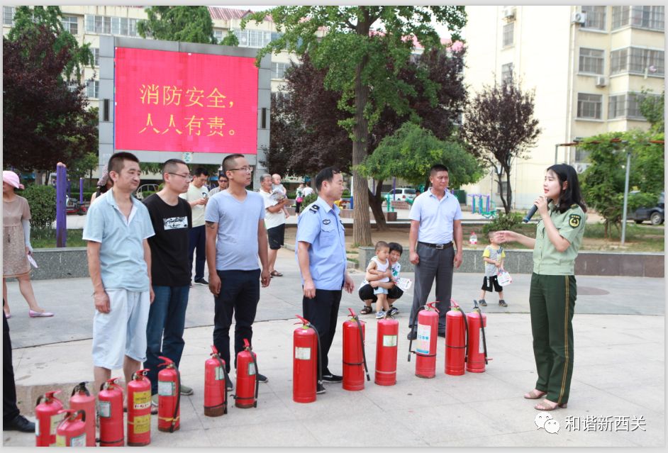 6月28日下午,兰山街道西关社区富民小区广场上,100多名社区居民在认真学习了解消防知识,观看消防演练。刘立新、刘现典、潘鲁军等现场观摩并指导。