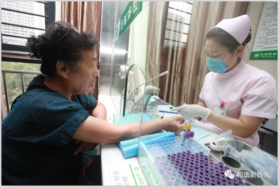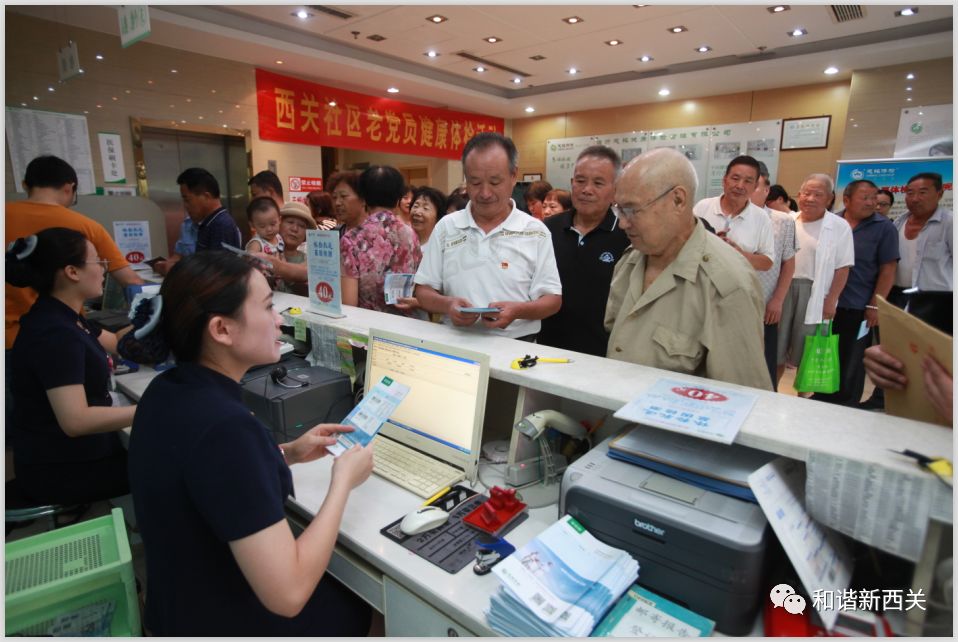 一大早,参加查体的老党员在社区志愿者的搀扶下,来到在查体现场,老党员们有秩序的排着队,依次进行着测量血压、采血、彩超、胸透等检查。