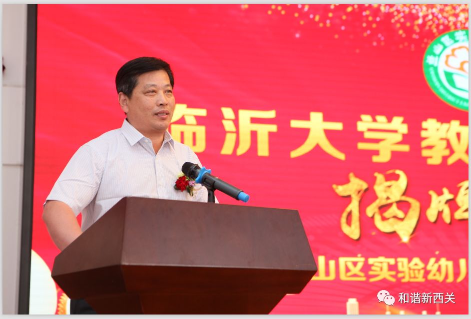 临沂大学费县分校党委书记孙成明在致辞中高度赞扬了兰山区(西关)实验幼儿园校园建设、师资水平和办学质量。他说,今天的揭牌仪式是双方合作的良好开端,临沂大学费县分校将为兰山区(西关)实验幼儿园提供更多更好的服务,携手共建,共同提高,使双方的合作结出丰硕成果。