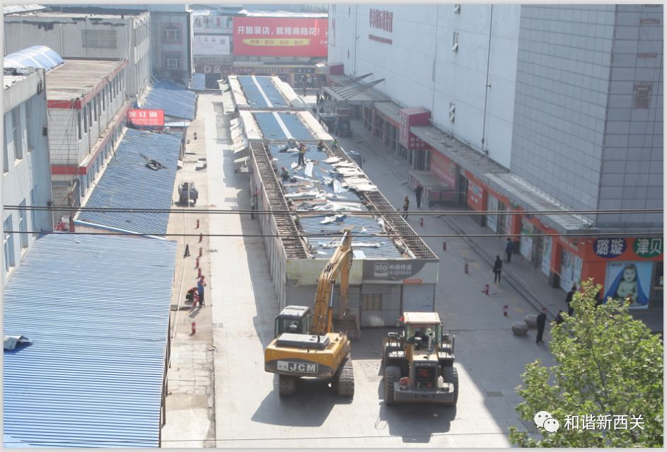 4月20日上午10点,随着铲车的轰鸣声,华丰金街市场的首批42间铁皮屋商铺依法集中拆除,拆除面积达252平方米。市城管局局长刘松田、兰山区副区长桑立杰、兰山街道施文山、梁振勇、聂依顺、丁国梁、王云华及西关社区两委成员现场督导。 为缓解商铺紧张问题,西关社区于2011年建起了总建筑面积2000多平方米的铁皮屋商铺,自建成以来一直作为商铺经营使用,主要以销售针织、小商品类产品,每年可为市场创造110万元收入。