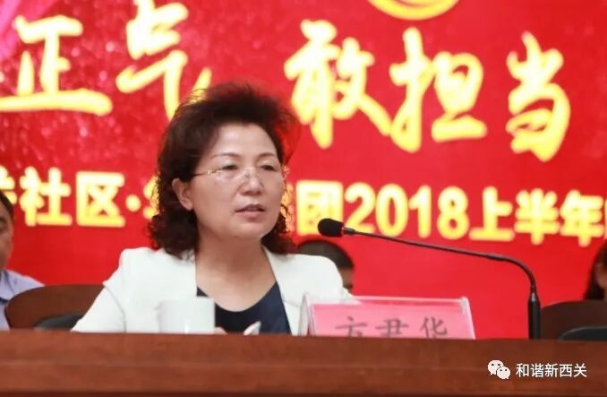 西关社区党委书记、山东华丰集团董事长郁新闻对2018年上半年的工作进行了总结,对下半年的任务进行了部署和要求,会议由西关社区党委副书记方君华主持。