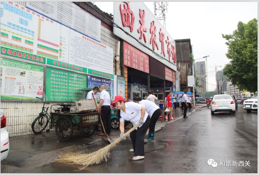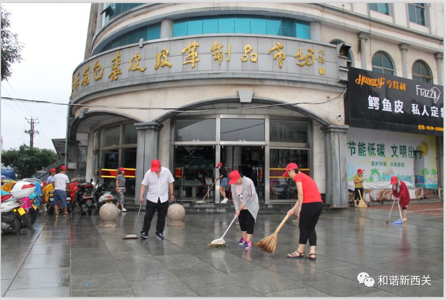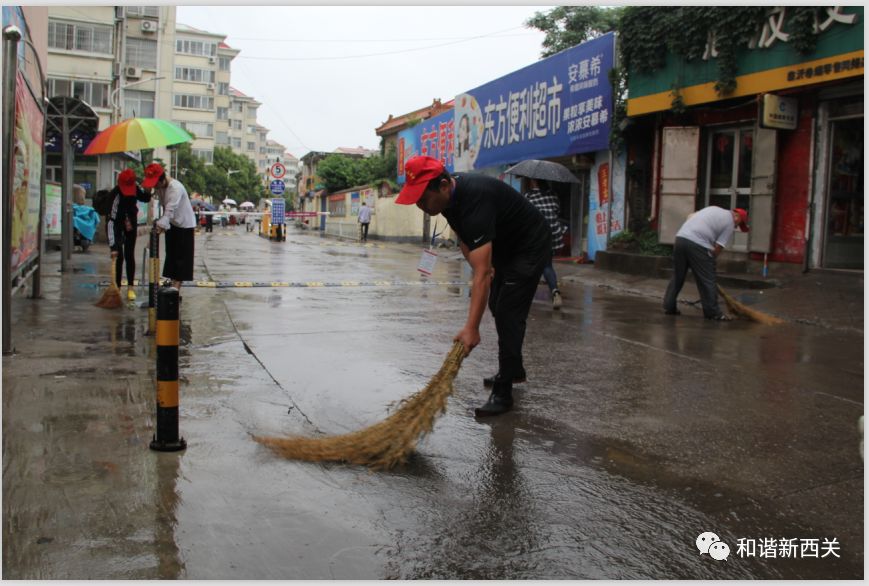 农贸、箱包、鞋帽、成衣等市场的志愿者们,忙着清扫垃圾,保持环境卫生;社区团委也为志愿者们送来雨具,担当起了大家的好后勤……